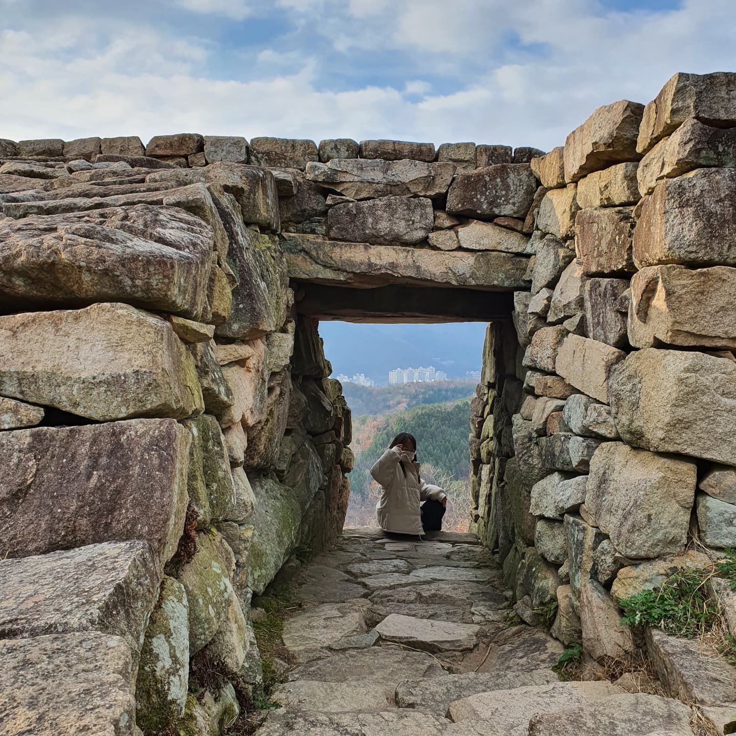 10분남짓 숲길을 오르면 분산성에 도착한답니다.
