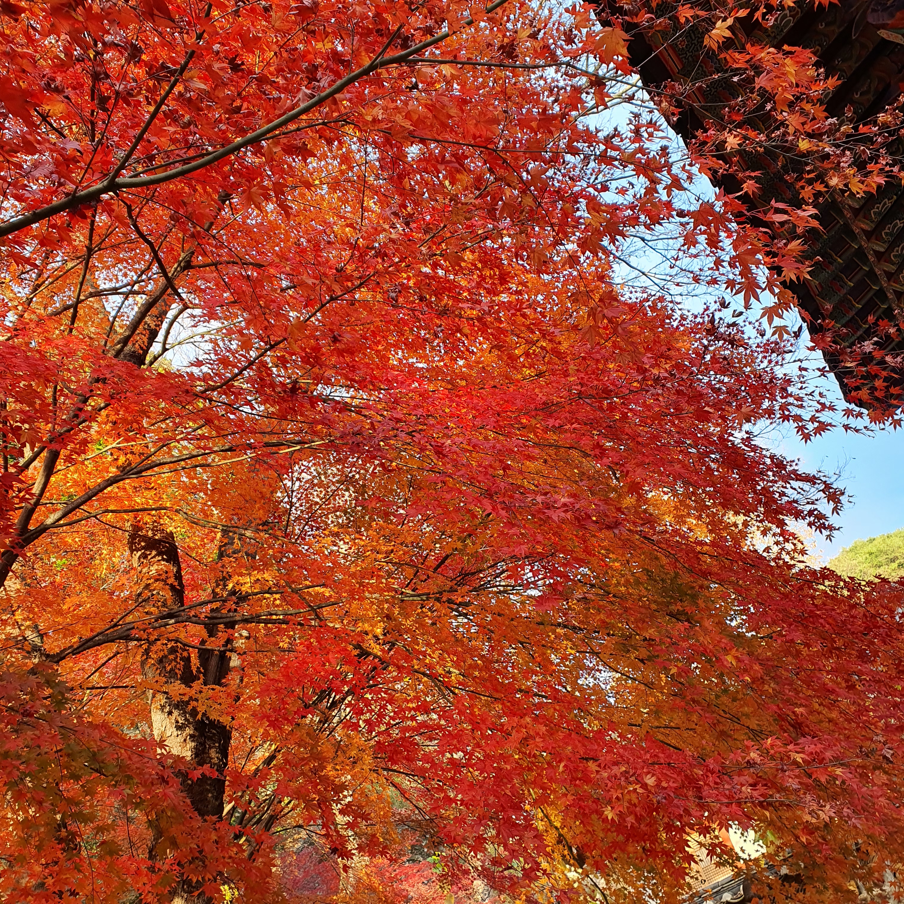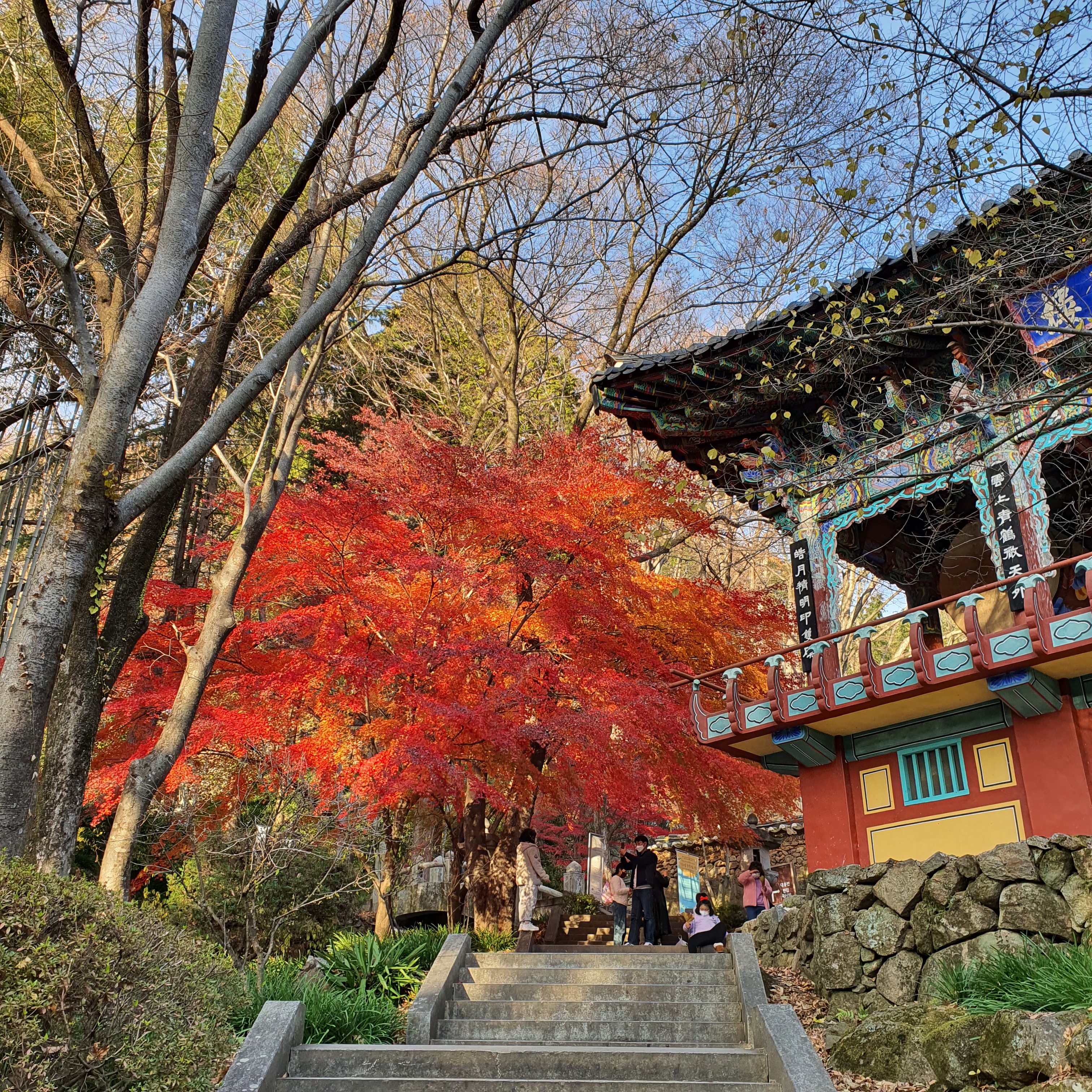 대웅전 들렀다 삼성각 들렀다 내려오는 길에 만난 단풍나무, 여기가 쌍계사 가을포토존이네요🍁