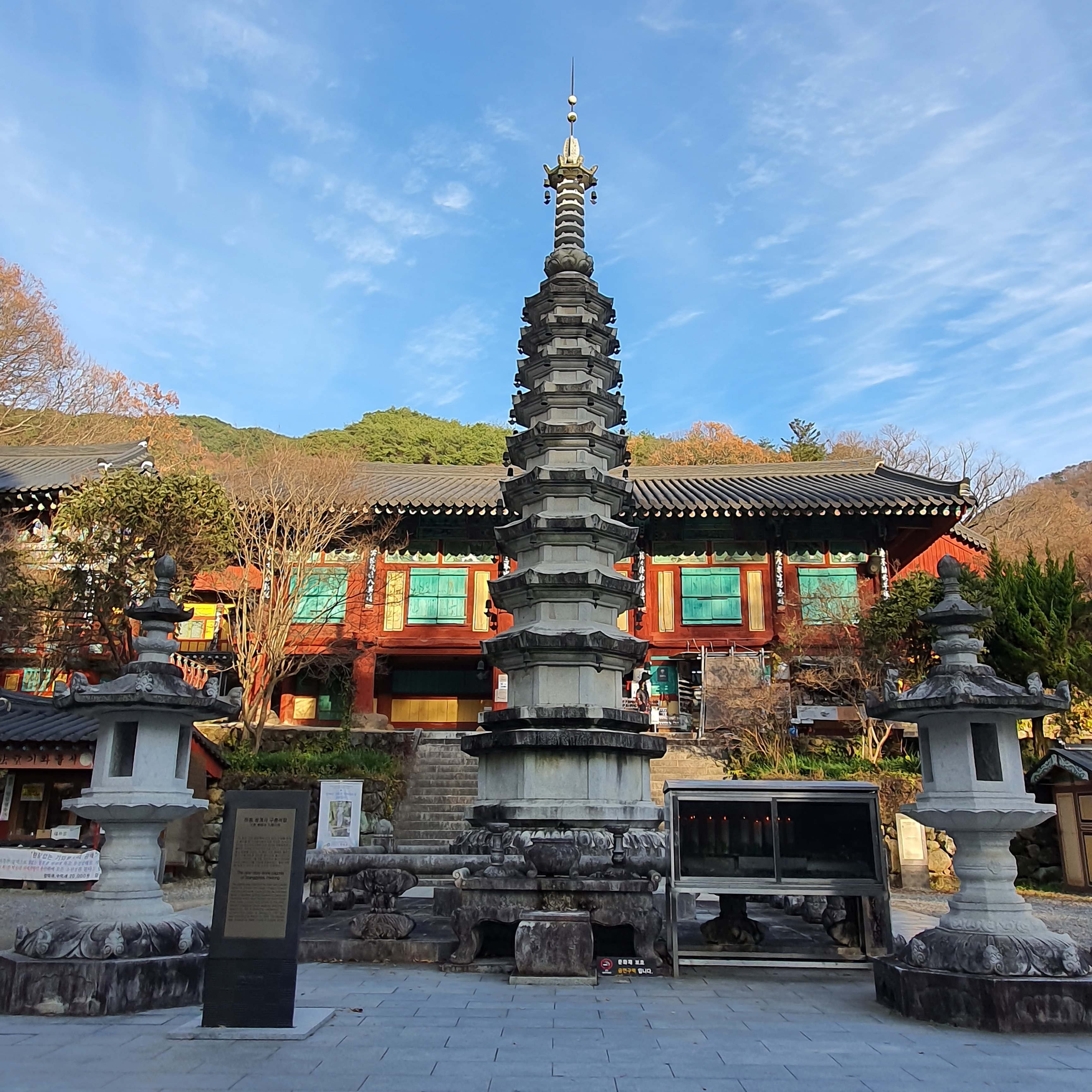 가을산 뒷배경이 구층석탑을 더 돋보이게 하는것 같아요:D